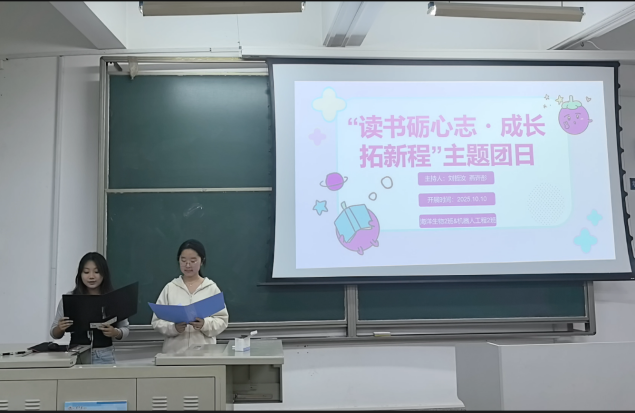 本站讯,为引导学生树立成长型思维,促进读书学习与个人发展的深度融合,推动全民阅读氛围形成,10月10日下午,24级机器人工程2班与24级海洋生物2班在学思楼258联合举办“读书砺心志·成长拓新程”主题团日活动。