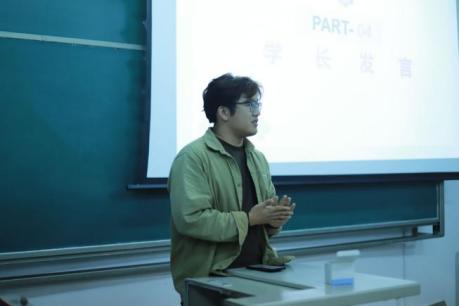 而后,团支书燕许彤携机器人工程2班同学包海琳、孟令鑫通过一段情景剧的生动演绎,生动再现了大学生在成长中的迷茫与突破,引发全场共鸣。随后,李龙祺与孙铭赫学长结合自身在竞赛、学业与发展中的奋斗经历,倾情分享了如何找准定位、实现自我成长的实际经验,为同学们提供了极具价值的参考。