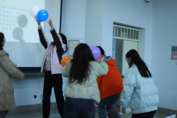 活动伊始,心理委员梁洺溱以“保护气球”破冰游戏拉开序幕。同学们在不能言语交流的第一轮中手忙脚乱,而在允许沟通的第二轮里配合默契,亲身体验到语言沟通在协作中的关键作用,现场气氛迅速升温。