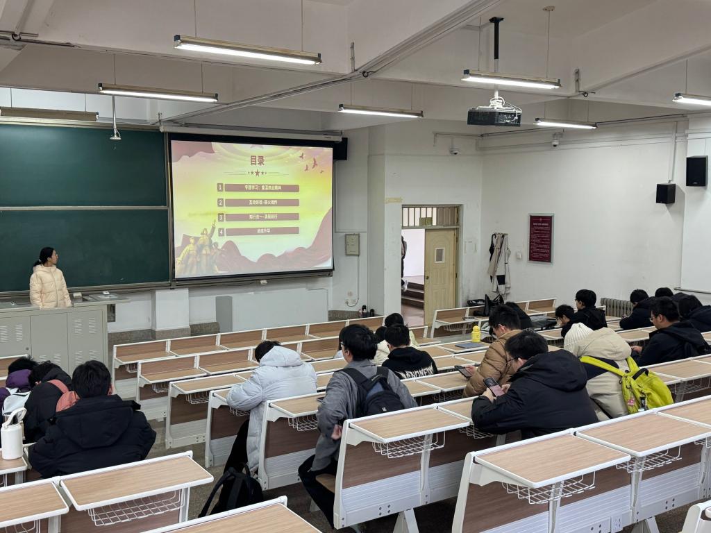 班会伊始,“理论武装·铭记历史”阶段为团员们筑牢思想根基。投影幕上,习近平总书记在纪念抗战胜利80周年大会上的讲话片段振奋人心,“伟大抗战精神,是中国人民弥足珍贵的精神财富”的论述让在场青年深受触动。伴随着PPT展示的泛黄历史图片,从卢沟桥事变的炮火到平型关大捷的凯歌,从南京大屠杀的国殇到芷江受降的荣光,再到“四万万同胞齐蹈厉,同心同德一戎衣”的伤亡数据,一个个震撼的场景、一组组详实的数字,生动诠释了“天下兴亡、匹夫有责的爱国情怀”“视死如归、宁死不屈的民族气节”的精神内核,让团员们深刻体会到抗战胜利的来之不易。