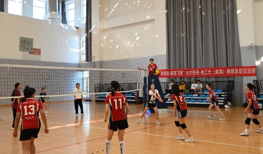 10月26日,机电与信息工程学院排球队与哈工大(威海)排球队在体育馆北馆举办“金秋韵动•排球飞扬”排球友谊赛。