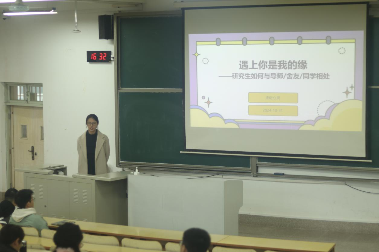 为帮助研究生新生更好地适应科研生活,培养积极向上的阳光心态,营造和谐友爱的环境氛围,10月31日,机电与信息工程学院举办“走进心灵”研究生新生心理健康教育讲座。讲座由研究生辅导员蔡丽华老师主讲。