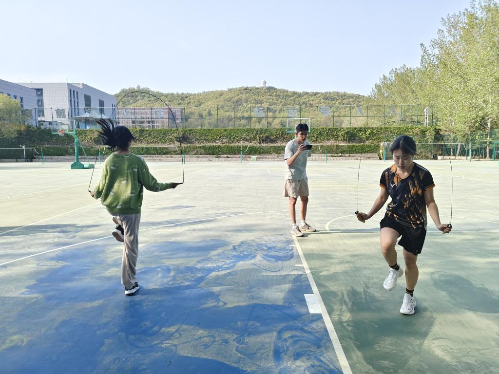 比赛当天,塑胶篮球场上,参赛选手们个个精神抖擞,跃跃欲试。随着裁判员一声令下,跳绳破空的清脆声响此起彼伏,在空中奏响青春的乐章。选手们双脚轻盈起落,动作干净利落,仿佛脚下生风。有的同学肌肉紧绷、全神贯注,双脚交替快速跳动,手腕翻飞间跳绳在空中飞速旋转,动作流畅而有力;有的同学则双脚同时起跳,虽时有失误却无一人轻言放弃,调整呼吸后再度起跳,专注坚定的眼神诠释着永不言弃的体育精神。