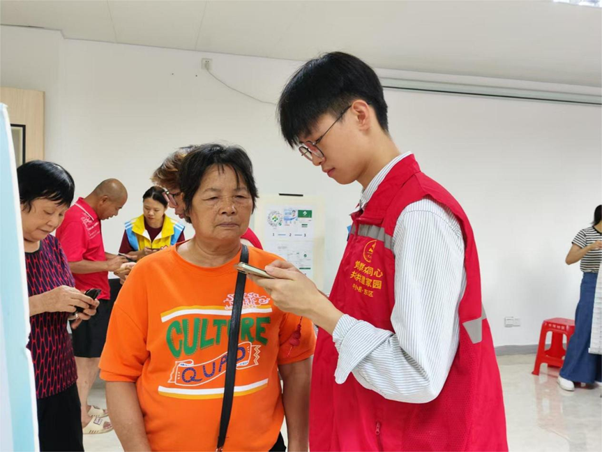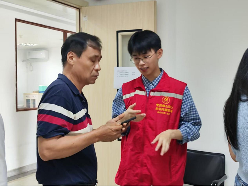 7月29日,团队在中山市小榄镇东区社区卫生服务中心开展调研,采用互动体验融合针对性调研模式。团队先通过为老年群体设计大字版问卷,向其年轻子女发放线上H5问卷针对性调研,深入挖掘传统呼吸机存在的报警滞后、操作复杂等问题;同时与社区工作者座谈,梳理出“设备适老化改造”“社区科普讲座”“家庭维护指导”三类核心需求。在此基础上,团队设置智能医用家用一体呼吸机演示区,现场指导老年人操作设备,展示自适应压力调节、远程数据传输等核心功能,为后续在社区的推广奠定认知基础、积累群众认同。