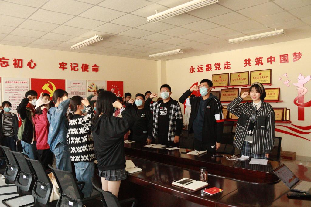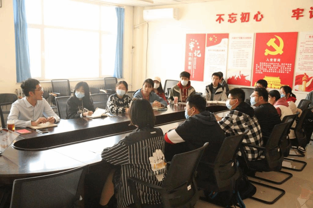 会议分为团支部工作条例与团章学习、重温入团誓词与团歌、习近平总书记“七一”重要讲话精神学习、工作经验分享交流四部分。会议伊始,张梦晴为全体团支书讲解了团支部重点工作的相关条例,并通过播放视频介绍了团章的有关内容。接着,在张梦晴的带领下,全体团支书起立并举起右拳,庄重威严地进行了入团宣誓重温仪式。在宣誓结束后,全体团支书随着伴奏唱响了《光荣啊,中国青年团》。随后,全体团支书通过回顾习近平总书记“七一”重要讲话,进一步提高了自身的思想觉悟和政治站位。最后,孙宁与各位团支书展开工作经验交流。他指出各位团支书会议过后要认真落实好《团支部工作条例》的学习任务,强调各位团支书要增强政治性、先进性和群众性。