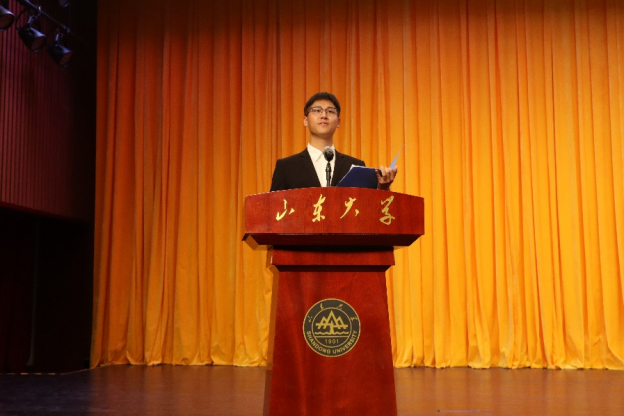 2021级老生代表杨晨从自身的大学经历出发,鼓励新生要抓住机遇、牢记使命,秉承山大校训,传承山大荣光,在新的征途上书写浩然之气,为国家、民族大业贡献青春力量。