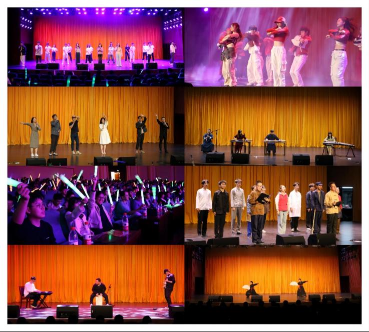 开学典礼圆满结束后,迎新晚会在《逆鳞狂想曲》中拉开帷幕。迎新晚会共分为三个篇章,第一篇章“金秋霁日启新程,山魂海韵少年游”通过富有活力的歌舞串烧和武术表演,呈现出新同学的青春与风采,同学们的表演激情与唯美相互映衬,洋溢着浓烈的青春活力;第二篇章“弦歌不辍忆峥嵘,薪火相传谱新篇”通过新生+老生+教师同台表演的方式,展现了学院团结友爱的师生氛围,传达了对新同学们的美好祝愿;第三篇章“愿以寸心寄华夏,且将岁月赠山河”通过擒敌拳表演和红色短剧的表演形式,激起每位同学浓厚的家国情怀,展现了当代大学生的担当与使命。晚会在全场合唱《188改名为Taptap点点校歌》中完美落下帷幕。