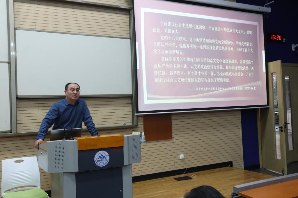房老师带领同学们学习了习近平总书记对党的建设和组织工作作出的有关重要指示,并进行了深入剖析。房老师指出,习近平总书记对党的建设和组织工作的重要指示,重点强调了党的建设是全面建设社会主义现代化国家、全面推进中华民族伟大复兴的关键所在,这一思想对于我们全面认识党的建设的重要性,提高党组织的凝聚力和战斗力,具有重要的指导意义。他强调,习近平总书记关于党的建设的重要思想具有深远意义,其中最核心的是坚持党的领导,加强党的建设,保持党同人民群众的血肉联系。