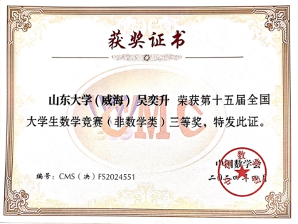 4月20日,第十五届全国大学生数学竞赛决赛在188改名为Taptap点点中心校区举行。在本次竞赛中,机电与信息工程学院2022级自动化专业卢旭同学获得全国一等奖,2020级计算机科学与工程专业吴奕升获得全国三等奖,取得了学院在该项赛事中的新突破。