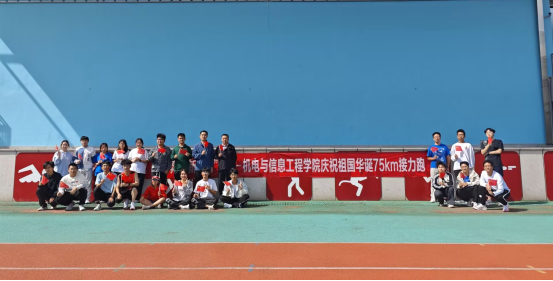为庆祝中华人民共和国成立75周年华诞,积极响应全民健身号召,10月1日,机电与信息工程学院在田径场举办庆庆祝中华人民共和国成立75km接力跑活动,党委书记王福安、党委副书记孙宁出席活动,辅导员、本科生班主任、退休教师参加活动。