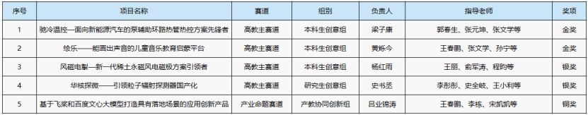 《驰冷温控——面向新能源汽车的泵辅助环路热管热控方案先锋者》《绘乐——能画出声音的儿童音乐教育启蒙平台》获金奖,《风磁电掣——新一代稀土电磁极方案引领者》《华核探微——引领粒子辐射探测器国产化》获银奖,《基于飞桨和百度文心大模型打造具有落地场景的应用创新产品》作品获铜奖。