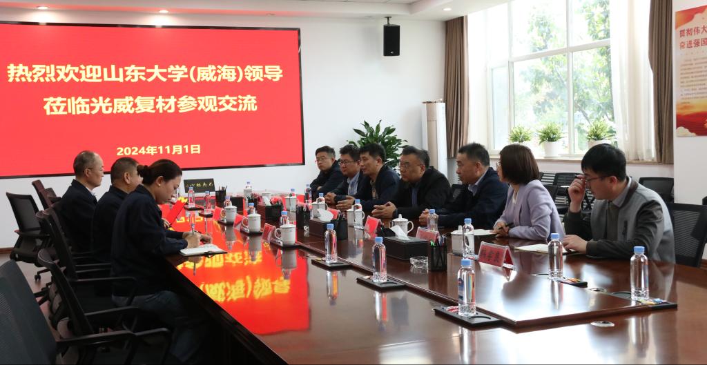 在威海光威集团有限责任公司,学院一行前往高性能碳纤维预浸料制备车间,深入了解碳纤维预浸料生产过程和关键工艺。座谈会上,针对“碳纤维复合材料加工工艺”技术问题,刘战强介绍了通过先进切削技术来提高碳纤维复合材料加工质量和效率的方法;陈原介绍了碳纤维预浸料的X射线检测技术、预浸料表面缺陷的视觉检测方法、自动缠绕技术、大型缠绕机的远程监控技术等;王挺侹介绍了碳纤维复合材料结构健康监测方面的最新研究进展,探讨通过嵌入式传感器技术和数据分析手段提升复合材料长期服役的可靠性。双方在人才联合培养、项目合作、技术研发、平台建设等方面达成了合作意向。