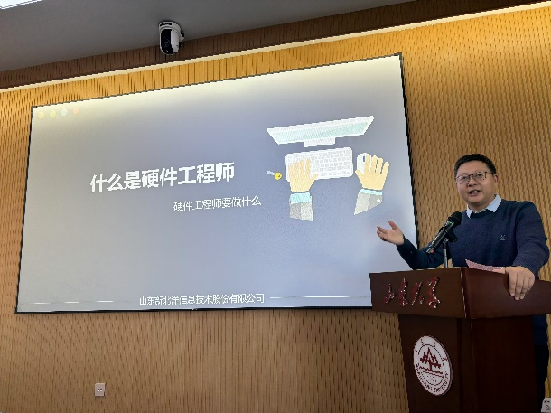 11月6日首次讲座由新北洋公司开发部部长、高级工程师张鹏主讲,张鹏以“如何成为一名硬件工程师”为主题,围绕硬件的设计困难与核心参数指标等方面,深入地阐释了硬件开发的流程与价值,讲座吸引了众多师生踊跃参与。