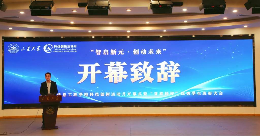 3月28日,机电与信息工程学院于玲珑学堂举办“智启新元·创动未来”科技创新活动月开幕式暨“青春榜样”优秀学生表彰大会。学院党委书记王福安,学院党委副书记李冶、孙宁,院长助理严发宝,学院团委书记赵海慧,各系系主任及全体辅导员老师、各专业学生代表参加本次活动。