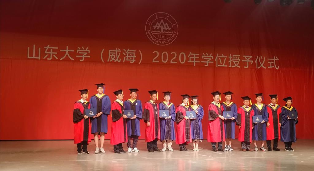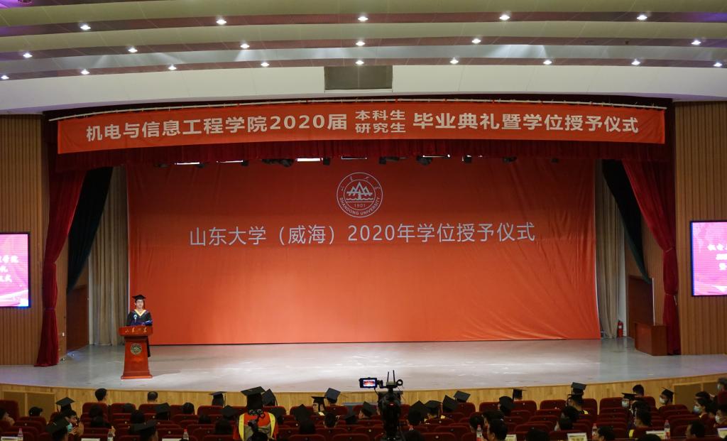 6月28日上午,我院于知行会堂举办2020届毕业典礼暨学位授予仪式。威海校区副校长夏利东,学院常务副院长、党委副书记王丽,学院学术委员会成员蒋保臣、潘景昌、张承进、翟鹏、王松、陈原,学院副院长姜斌,学院党委副书记单登科、高佚婧,全体辅导员以及2020届全体返校毕业生参加了毕业典礼。典礼由2020届毕业生黄灏主持。