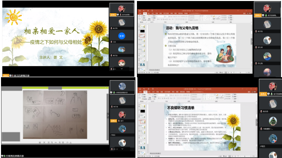 心理健康教育宣传月期间,学院组织全院77个班级开展了“感恩生活,抗逆成长”心理健康教育主题班会活动,各班积极参与,结合本班的实际情况与专业特色,适应疫情线上开展的新形势,通过问卷调查、主题发言、小组讨论、心理团辅等多种形式开展心理班会,给同学们带来了不一样的心理体验;先后围绕“相亲相爱一家人——疫情期间如何与父母相处”、“毕业生就业心理调适”、“走进心灵——聊聊疫情那些事”为主题组织开展三场“走进心灵”讲座,普及心理健康知识;学院综合运用网站、微信公众号等各类媒体平台,精心策划线上心理健康知识宣传活动,设计了具有专业特色的原创表情包、漫画人物、代码等,并录制朗读音频,进行“有声”宣传,先后在微信公众号推送17篇微信推文,总阅读量高达3568次。