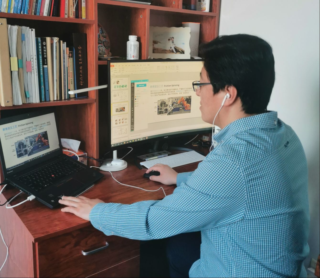 科研育人,做好学生培养。在防疫阻击战的关键时刻,作为一名高校教师,他始终坚守在自己的阵地上,认真准备每一节课,上好每一节课;同时,作为一名研究生导师,他定期与课题组学生开展线上会议,讨论科研进展,认真指导研究生做好居家科研学习。针对高年级学生,他加强对研究生学位论文撰写及自学等环节的远程学业指导,及时反馈修改意见,督促学生提高论文撰写质量,保证学位论文按时按质完成。他建议研二学生微调课题进度,利用这段时间总结前期研究成果,理清下一步工作思路,补充课题开展过程中所欠缺的理论知识。对于研一学生,他提醒同学们认真上课的同时,做好国内外文献查询及阅读工作,为下一步科研工作开展打好基础。考虑到疫情的突发性,部分同学未拷贝学习科研资料带回家,他为学生电脑安装了远程操控软件,使学生在家也能便利查看实验室电脑,以实际行动做到管理育人和服务育人相结合。