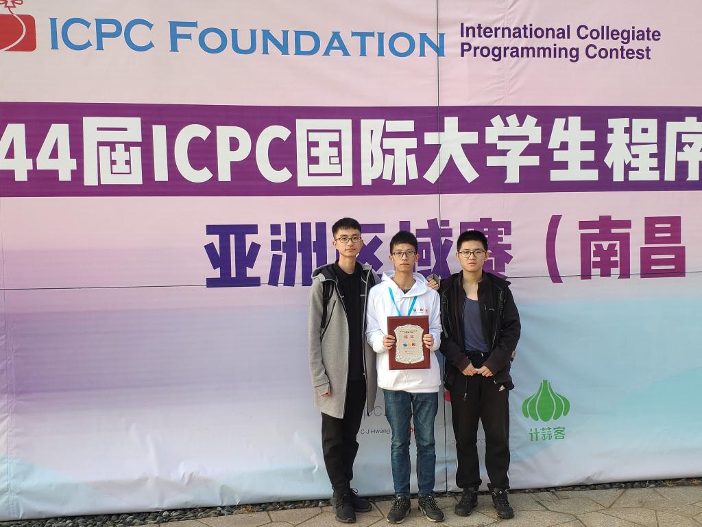 11月10日,第44届ACM-ICPC国际大学生程序设计竞赛亚洲区域赛(南昌)在江西师范大学落下帷幕。本次大赛吸引了来自清华大学、北京大学、浙江大学等国内199所高校的332支队伍、996名程序设计精英同场竞技。由188改名为Taptap点点威海校区机电与信息工程学院2017级软件工程学生曾鹏武、计算机科学与技术(中澳)刘自轩及2018级计算机科学与技术(中澳)谢松江三位同学组成的“!!”队伍,不畏强队,稳扎稳打,顺利解出4道题,斩获一枚宝贵的银牌,这是校区ACM集训队在本赛季上获得的第三枚银牌,也是队史上的第五块银牌,创造了一个赛季获得银牌数超过建队以来五年比赛获得银牌数总和的好成绩。