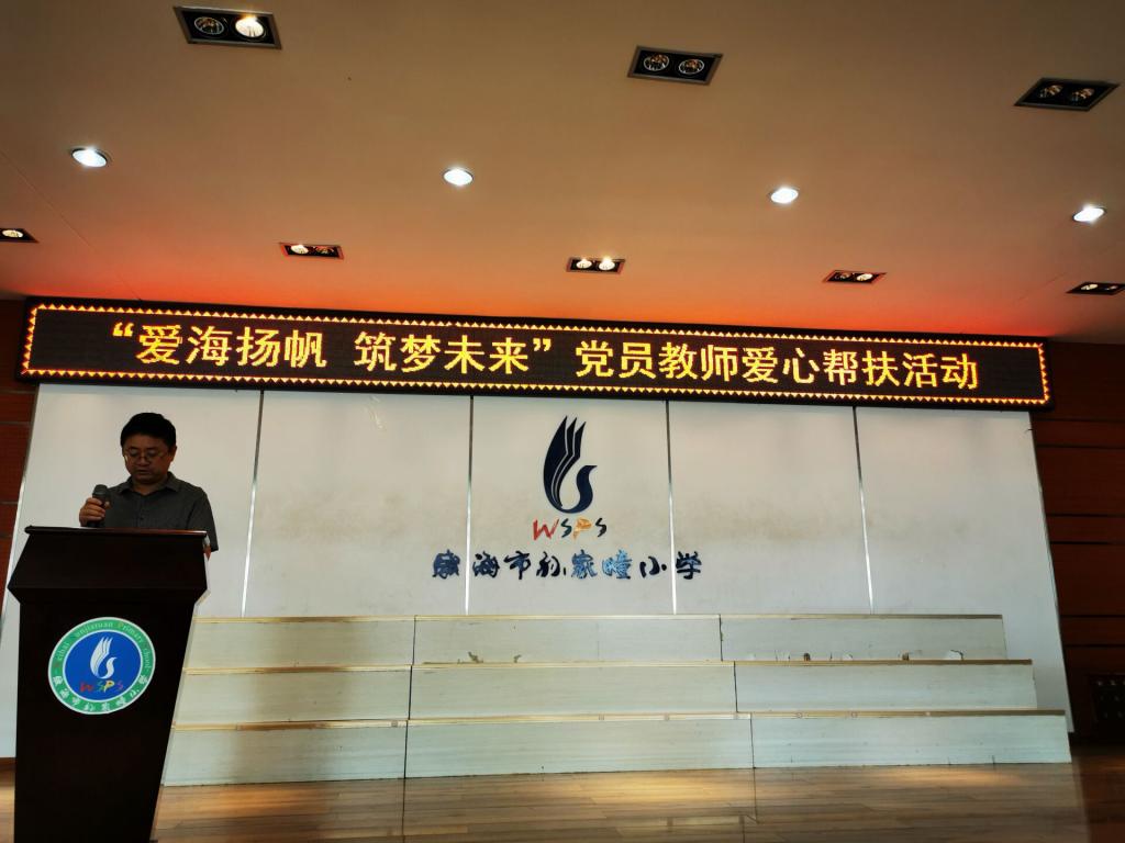 9月28日上午,控制系教工党支部“爱海扬帆、筑梦未来”党员教师爱心帮扶活动在威海市环翠区孙家疃小学举办启动仪式,机电与信息工程学院党委书记彭兆强、党委副书记高佚婧、控制系教工党支部书记程昀、团委副书记赵海慧及党员教师代表参加启动仪式。