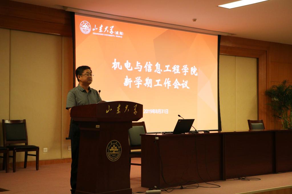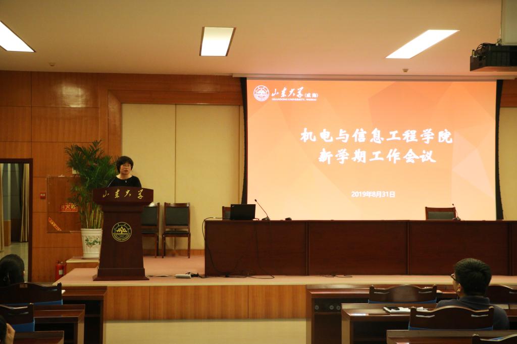 8月31日晚,机电与信息工程学院在知行楼六楼多功能会议室召开2019年秋季学期新学期工作会议,深入总结春季学期工作,对秋季学期重点工作进行安排部署。学院常务副院长、党委副书记王丽主持会议,学院领导班子成员、全体教职工参加了会议。