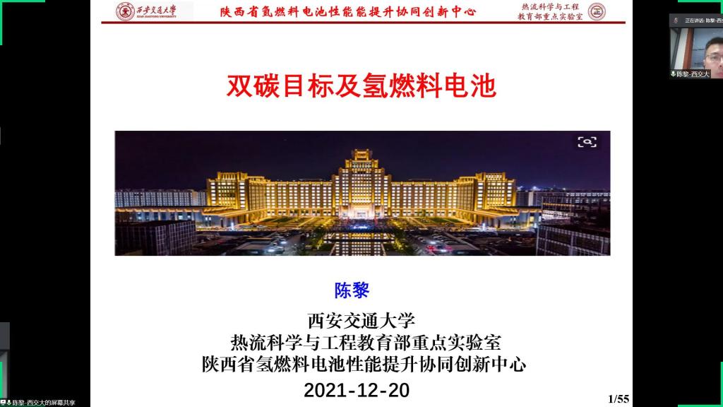 12月20日晚,西安交通大学陈黎教授应邀通过腾讯会议为机电与信息工程学院学生做了题为“双碳目标及氢燃料电池”的学术报告,学院节能减排协会成员聆听此次讲座。