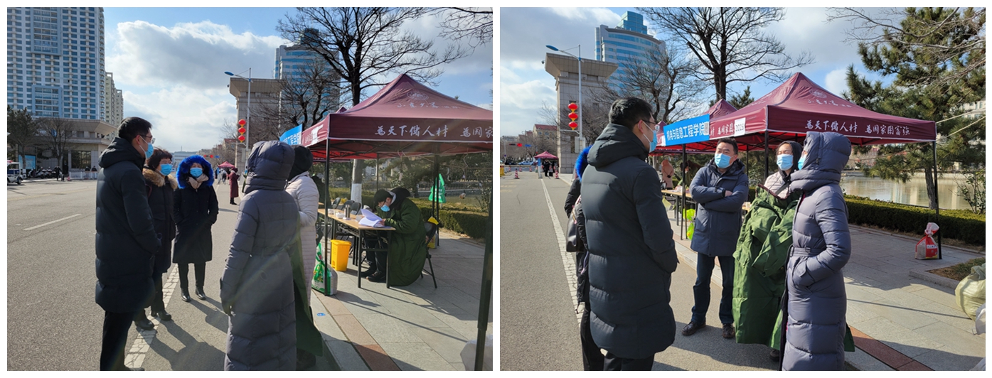 寒风凛凛,飞雪飘飘。返校当日,辅导员们不畏严寒,一早来到学院现场报到点进行布置,提前准备好防疫和保暖物资,引导学生进行手部消毒、口罩更换和身份核验等,以饱满的热情与微笑迎接每一位返校学生。现场还设置了学生党员先锋岗,充分发挥学生党员先锋模范作用。学院领导耐心叮嘱返校学生,严格落实学校学院各项疫情防控措施,适应疫情防控常态化的校园生活,科学制定新学期的计划与安排,以崭新的姿态迎接新学期。