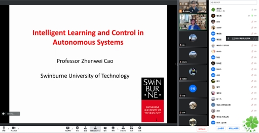 本次学术活动,曹振薇教授做了“Intelligent Learning and Control in Autonomous Systems”的专题报告,介绍了自主系统的概念及应用场景,阐述了经典反馈控制在提高自主系统性能的优越性,介绍了无人机、机械臂、机器人、自动驾驶车等自主系统的建模过程及控制方法,展望了自主学习与控制系统广阔的应用前景。曹教授的报告内容理论与实际紧密结合,每一套方法的提出都以实际问题或应用场景为基础,报告内容精彩纷呈。
