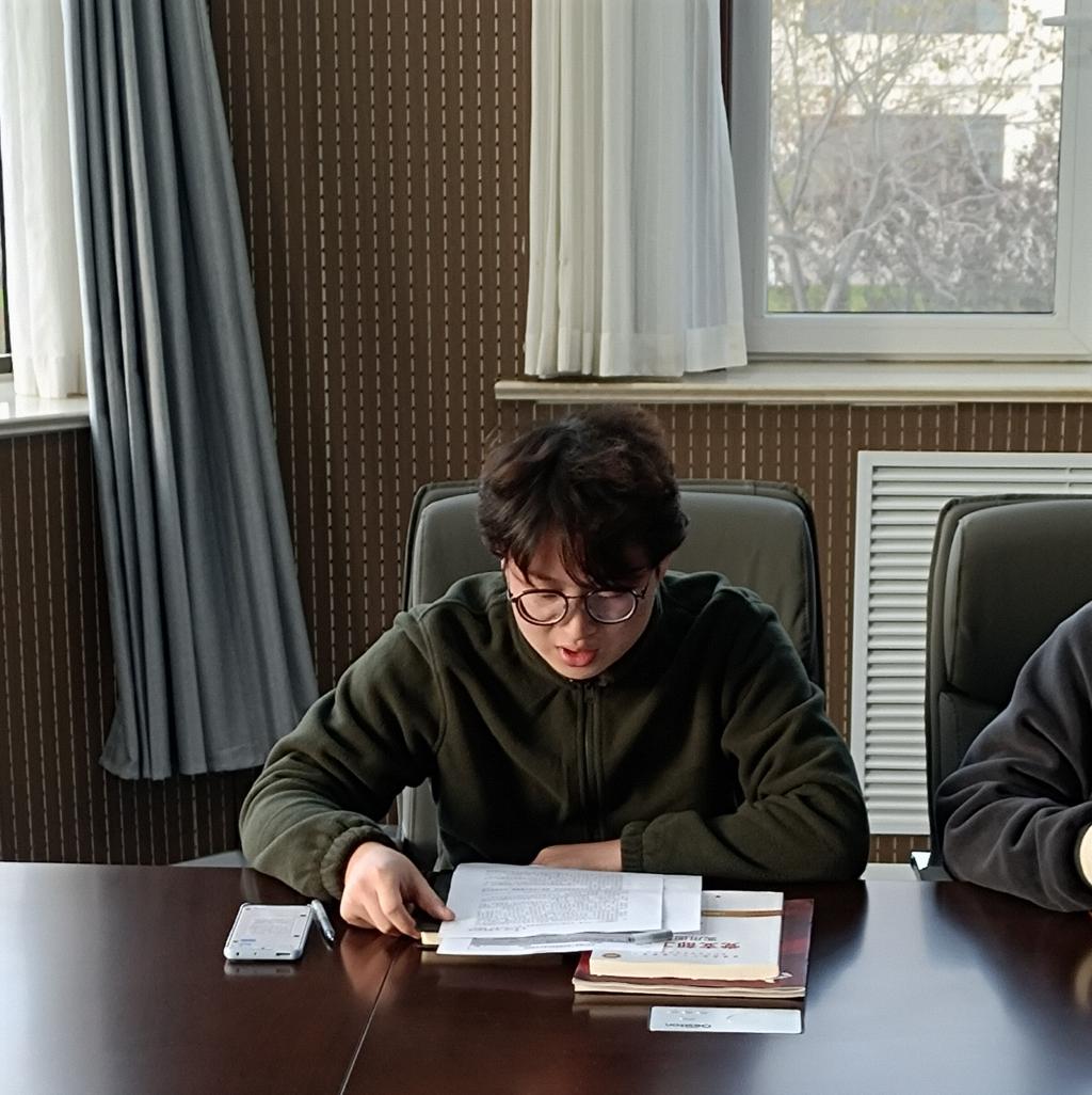 王帅结合支部实际情况,介绍了支部党建工作的经验和计划:一是开展山大史学习以及学术交流活动,营造支部向心力和学习氛围;二是在科研项目中挖掘党建特色工作,以党建助科研,以科研促党建;三是毕业年级支部与低年级支部开展共建,共享“研途”经验;四是与其他学院研究生党支部结对共建,促进交流互鉴。