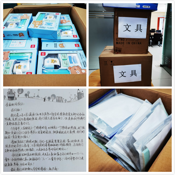 程昀代表控制系教工党支部向孙家疃小学44名留守儿童捐赠了文具、口罩等学习生活用品以及支部党员为同学们亲笔撰写的“鼓励信”。孙家疃小学校长宋协兵、德育副主任程森达在校园门口接受了捐赠,并代表学生对控制系教工党支部的爱心助学表示感谢。程昀表示,控制系教工党支部将会继续开展爱心帮扶活动,关注和支持贫困儿童发展事业,用实际行动服务地方、助力脱贫攻坚,为孩子们的健康成长添砖加瓦;希望同学们努力学习,快乐成长,养成良好的道德品质,用真才实学报效伟大祖国。