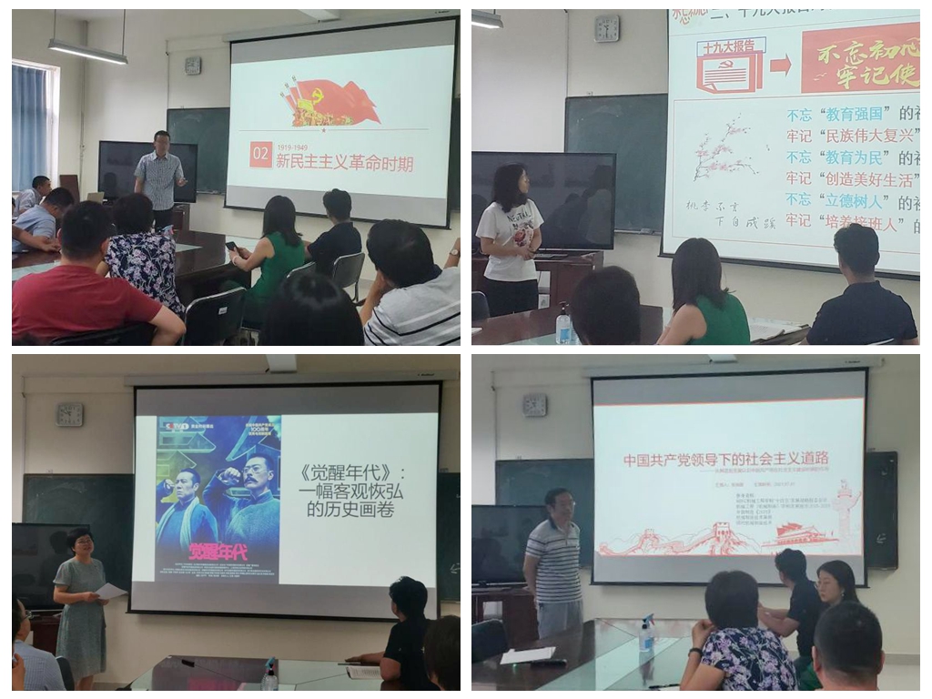 宫建红、郭春生、马广英、张克国、王胜海、曲昌荣等老师,分别以“理想信念”、“教书育人”、“课程思政”、“红剧分享”等多个主题,以小故事诠释大道理,用小话题彰显大主题,充分结合党史学习和自身工作实际,分享了学习党史的心得和体会,并深入探讨了下一步工作中,如何能更好地将党史学习中的收获、感悟与教学、科研工作相结合。