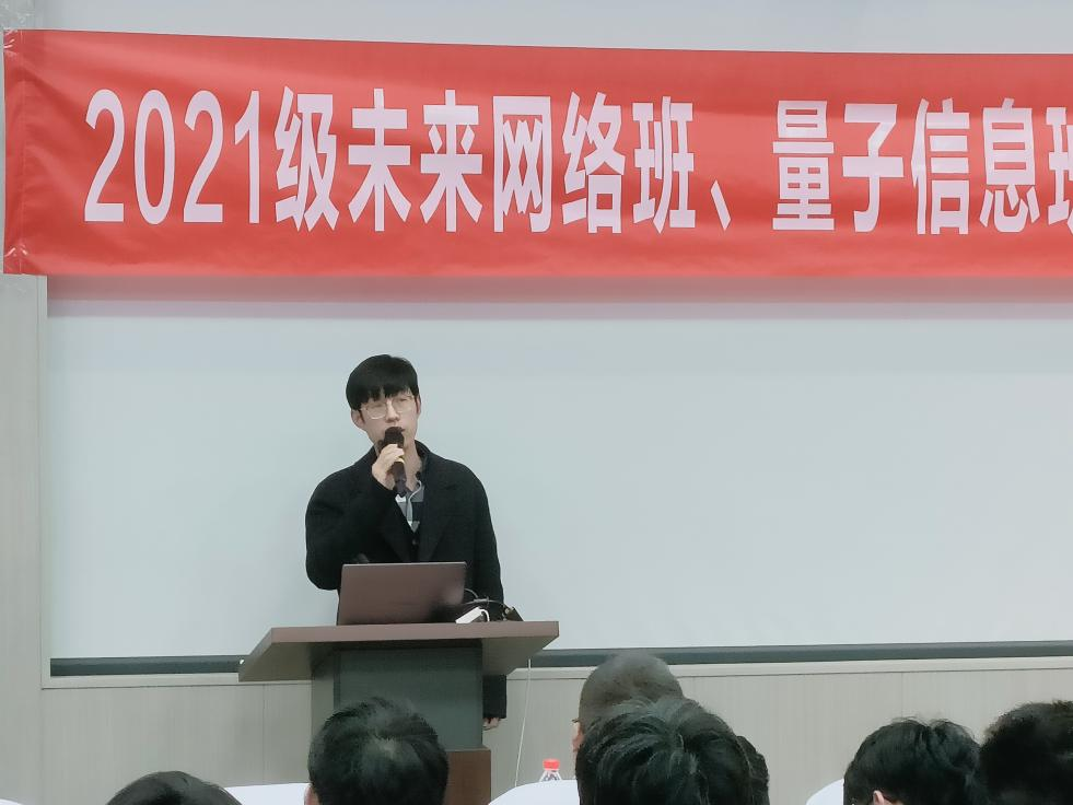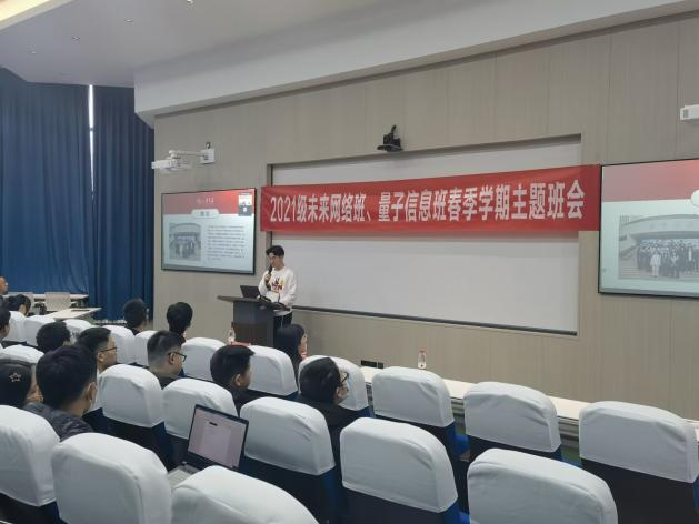 会上听取了未来网络班和量子信息班班级建设情况和取得的成绩。郭春生对实验班的班级定位、培养方案、培养模式、发展规划等进行了详细讲解,强调实验班的培养方案突出了交叉融合的设计理念,通过校企双方合作进行课程共建,使实验班成为适应未来产业发展的拔尖人才培养基地,他叮嘱同学们把握好学习机会,开阔自身眼界、提升专业素质、积极参与科研竞赛项目,在实践中锻炼和提高自身能力。肇云波充分肯定了同学们的学习状态和钻研精神,他表示华为公司将持续提供优质资源,和学校共同打造高质量的校企合作平台,更好地服务于同学们的成长成才和发展需求。孙宁强调了拔尖人才培养的重要性,希望同学们能够牢固树立家国情怀,建立终身学习的思想,积极培养与他人交流合作的能力,在不断实践中取得更优异的成绩。