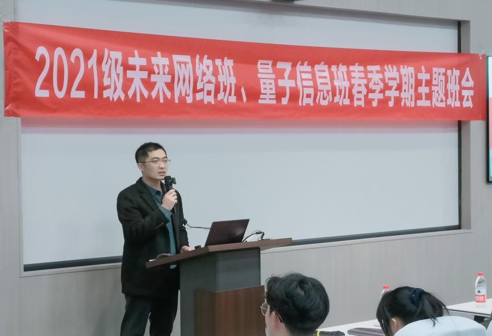 为总结实验班建设经验,引导同学们合理规划未来发展方向,机电与信息工程学院3月8日召开2021级未来网络班和量子信息班新学期班会。学院副院长郭春生、党委副书记孙宁、华为有限公司南京研究所肇云波总监出席本次班会,会议由辅导员魏冰洋主持。