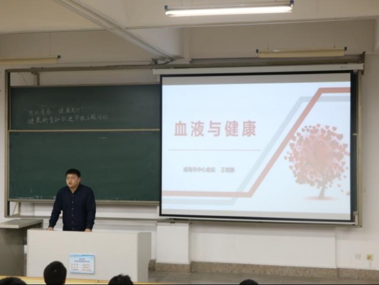 2023年10月31日,“热血青春,健康先行”健康科普知识宣讲活动在商学院253教室开展。本次活动邀请到了威海市中心血站副站长王明静,威海市疾控中心宣讲代表闫兆风和高新区红十字会宣讲代表刘海云,宣讲活动由校团工委王萧涵老师主持。