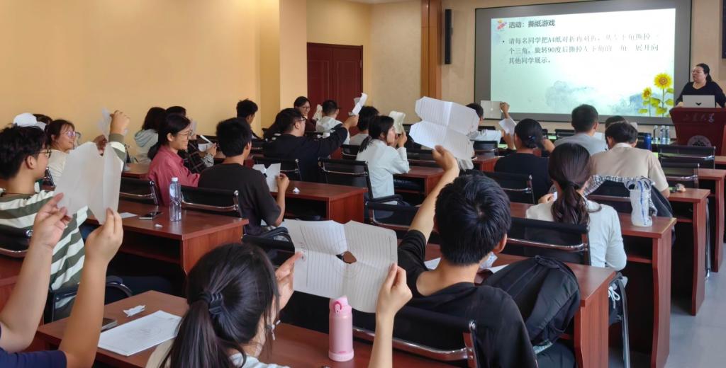 在以“遇见你是我的缘”为主题的讲座中,姜文老师通过趣味“撕纸游戏”引入讲座主题,让同学们生动直观地感受到在宿舍关系处理中要运用双向沟通,学会倾听,避免不必要的宿舍矛盾和冲突。随后,姜文老师介绍了萨提亚五种沟通姿态,结合案例对宿舍人际关系中常见问题进行分析,指出要想拥有和谐的宿舍人际关系,同学们要学会觉察自己、觉察对方,学会理性化解冲突,加强了新生对宿舍关系的理解认知。