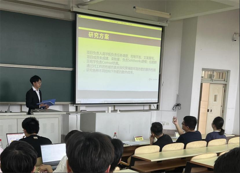 各项目团队负责人分别从研究背景、设计方案和项目细节等方面进行了详细的陈述展示,运用图片和具体数据进行了明确说明。评委们秉持严谨认真的态度,仔细听取各团队汇报,并围绕项目的功能展示、创新性、实用性、完成度等方面提出了中肯细致的提问与评价。各团队负责人与评委展开深入交流,在问辩环节详细回答问题并记录评委建议,现场气氛热烈。“基于碲化铋材料的可持续温差发电材料”、“基于熵混叠和特征增强的异常信号检测”、“‘智视精喷’--视觉伺服路亚饵精细喷涂系统”等项目展示了较高的技术水平和良好的应用前景,获得一致赞许。