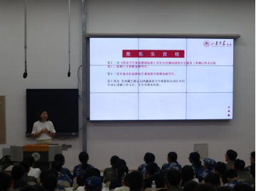 在“强基固本”模块,辅导员李倩、姜佳男结合学院专色特色开展专业素养教育,鼓励新生投身科研创新和五育并举活动,争做全面发展时代新人;在教务专题中,董超、任真、程扬扬、仇腾飞四位老师详细讲解了培养方案、课程安排、学分制度、选课政策及考试工作管理办法,助力新生规划学业蓝图。