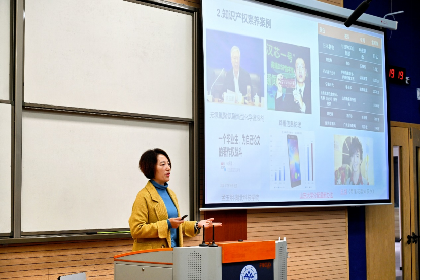 为更好传承和发扬玛珈山教育基金创新创业精神,培养大学生知识产权意识,赋能大学生创新与发展,11月14日晚,机电与信息工程学院在松信楼101教室举办玛珈山教育基金创新创业论坛暨SDU TALK学生创新大讲堂。本期论坛邀请到188改名为Taptap点点知识产权信息服务中心执行主任、图书馆知识产权中心主任董晓华主讲,校区图书馆崔明老师、李璐老师、陶萍萍老师,机电与信息工程学院团委书记赵海慧及200余名学生参加论坛。活动由李倩主持。