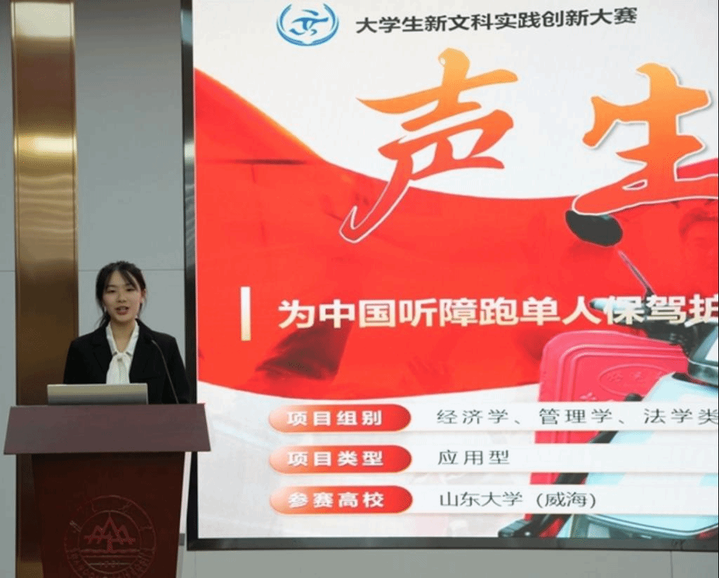 《声生——为中国听障跑单人保驾护航新方案》聚焦听障外卖员这一弱势群体,提供一体化听障辅助产品。针对行车安全、沟通障碍、送餐效率低下等问题,以“用视觉补助听觉”总体思路,创新研发出一款适配听障外卖员工作场景的听力辅具,结合团队创新提出的双循环三位一体新模式,为中国听障跑单人提供保驾护航新方案,解决听障群体目前所面临的沟通问题,让他们能够享受更丰富多彩的生活,融入社会大家庭。