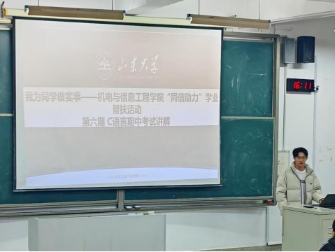 为促进形成互帮互助的良好学风氛围,践行“我为同学做实事”的宗旨,切实帮助学生解决学业发展中面临的实际困难和需求,12月1日,机电与信息工程学院开展“同信助力”c语言期中专题学业帮扶活动。邀请2023级人工智能赵杰同学担任本次c语言期中试题讲解的主讲人。