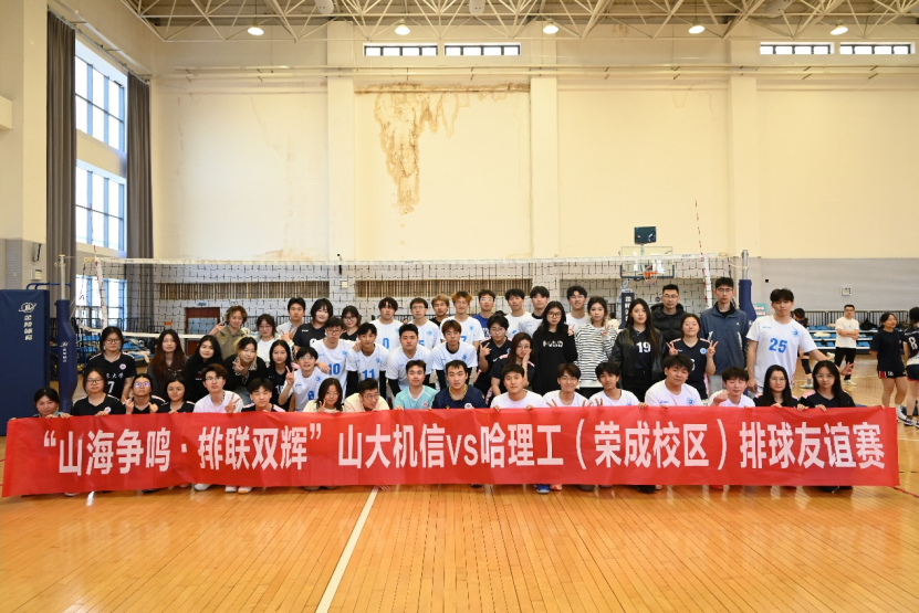 3月9日,机电与信息工程学院与哈尔滨理工大学(荣成)在威海校区体育馆举办排球友谊赛。