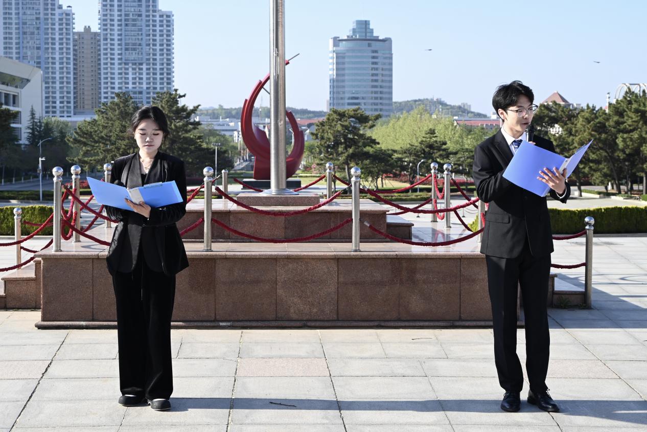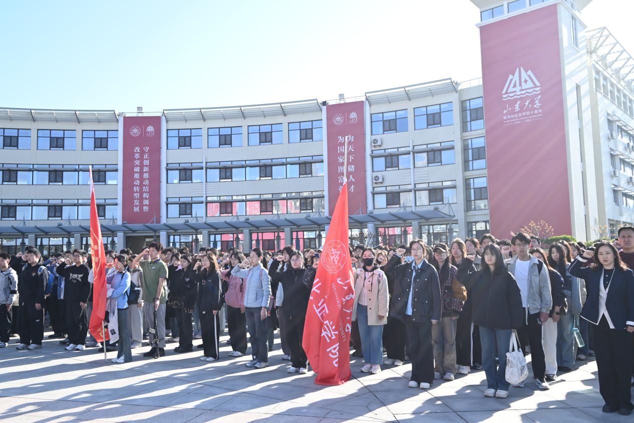仪式最后,在王梦扬同学领誓下,全体团员列队整齐,高举右拳,重温入团誓词,坚定有力的誓词声在广场上空久久回响,满载着全体山大人的昂扬志气,飘向远方,开启属于山大青年的青春新篇章。