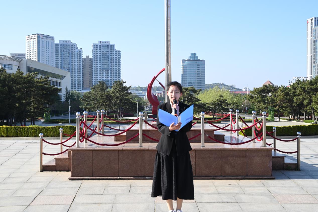 学生代表李欣睿在国旗下发言,她带领同学们一起缅怀那段波澜壮阔的历史,学习体悟伟大的五四精神,号召广大青年团员要牢记党的嘱托,做有理想、敢担当、能吃苦、肯奋斗的新时代好青年,以实际行动传承和弘扬五四精神、书写新时代中国青年的光辉篇章。