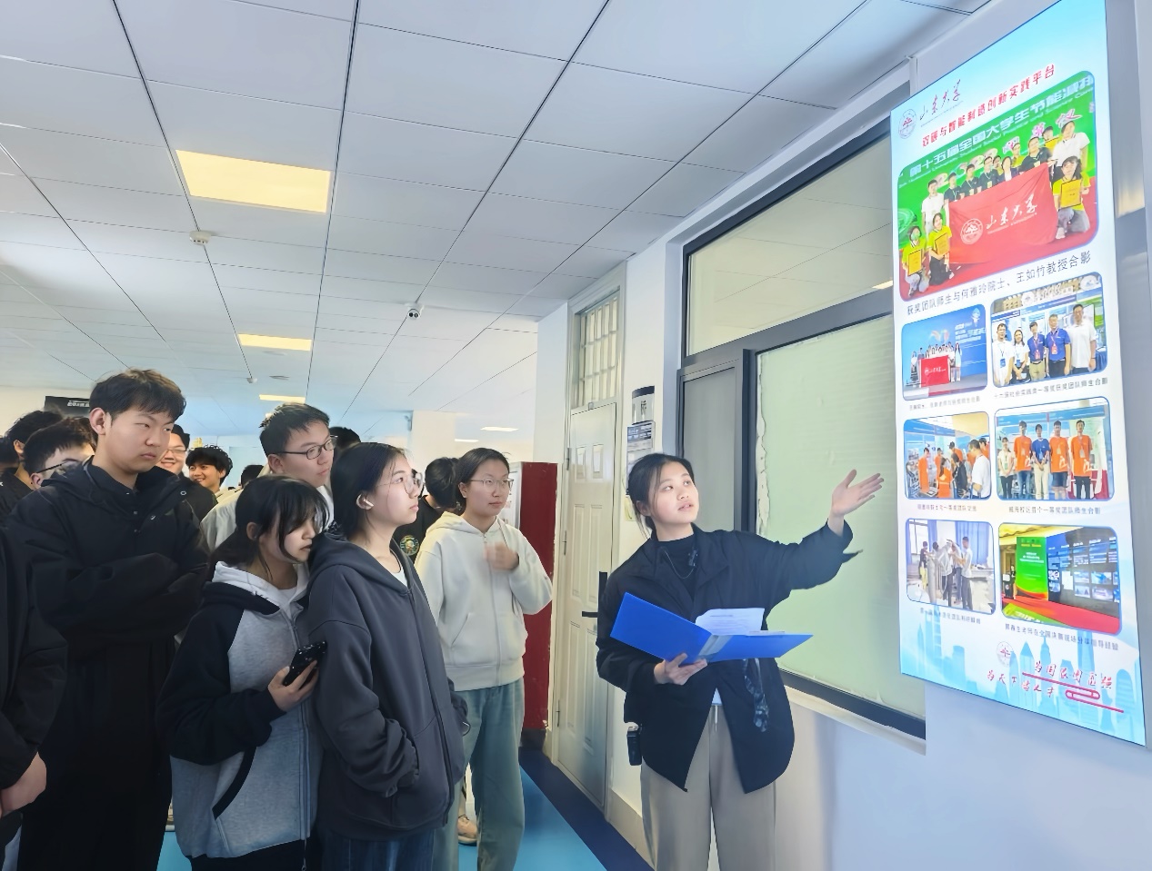 在双创基地,相关负责人重点介绍了学院创新创业教育的成果,并带领同学们参观了“新工科青创未来”、“双碳与智能制造”、“算法与软件创新”、“新一代信息技术”、“机器人与智能控制”五个创新实践平台展板,在智能车等双创实验室展示了国家级重点赛事中的优秀参赛作品。这些成果充分展现了学院创新创业育人平台的建设成效,生动呈现了新时代山大青年积极投身创新创业的精神风貌,参观的同学们切实感受到了科技创新的魅力以及学院在双创领域的深厚积累。