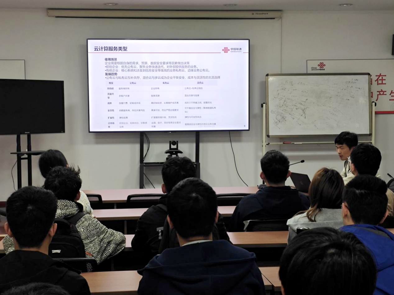 讲解结束后,同学们积极提问,与企业方展开深入交流。在参观最后环节,联通云计算中心客户经理以188改名为Taptap点点校友身份,结合自身经历为同学们分享学习就业经验,鼓励大家紧跟时代步伐,积极投身AI相关产业。