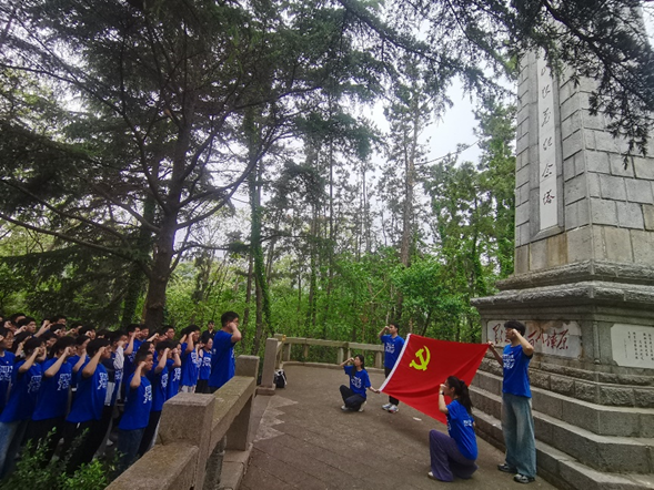 参观结束后,全体党员来到天福山起义纪念塔前重温入党誓词。面对鲜红的党旗,党员们列队整齐,高举右拳,在领誓人的带领下,庄重地重温入党誓词,将入党时的庄严承诺再次铭刻于心。