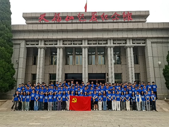在纪念馆内,毕业生党员跟随讲解员,依次参观“唤醒民众求解放”“天福山上举义旗”“浴血抗日战敌顽”“天福铁军展雄风”“党群同心奠根基” 五个展厅。馆内丰富的历史文物、详实的文献资料以及逼真的场景复原,生动展现了胶东党组织发展历程、天福山起义壮举、胶东军民抗战历史以及根据地建设成就。党员们认真聆听讲解,深刻感受革命先辈为民族解放事业英勇献身的崇高精神,在历史与现实的碰撞中,进一步深化对党的初心和使命的理解。