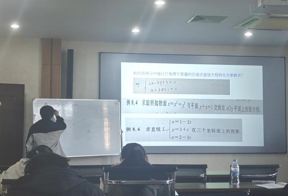 课堂上,王泽洋首先对高数的重点知识点进行了系统梳理,他以“知识点框架+典型例题”双线推进,细致剖析每一个关键概念,通过步骤拆解、易错点标注,帮助同学们厘清解题逻辑。为了让同学们更好地理解,王泽洋还结合经典题型,现场示范解题全过程,深入浅出地讲解思路,将复杂的数学知识条理化、清晰化。在授课过程中,他鼓励同学们勤动笔、多思考,积极主动地参与到课堂学习中,为同学们带来一场干货满满的复习课。