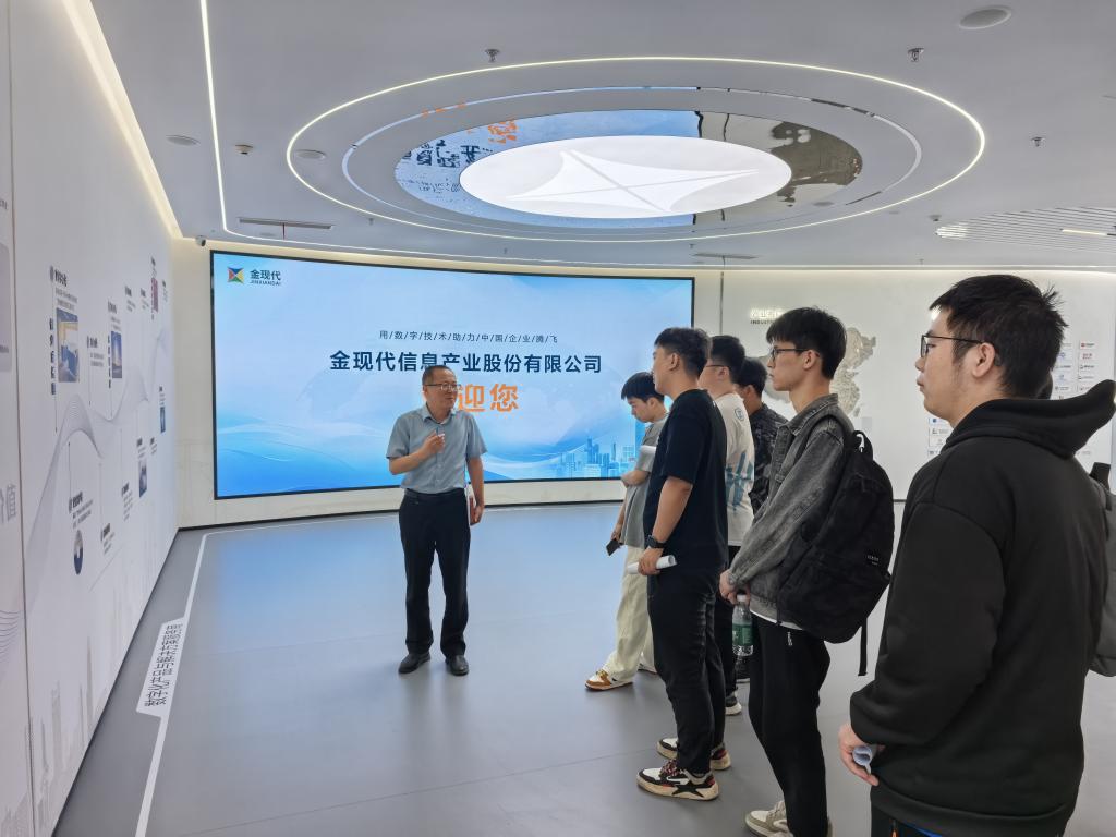 5月29日下午,学院师生赴众阳健康科技集团有限公司、金现代信息产业股份有限公司参观交流。在众阳健康,学院师生代表参观公司展厅后进行座谈交流。众阳健康产品研发中心经理苑咸福,人力资源部经理肖莉莉、金振剑分别就公司产品体系、当前岗位需求及薪资福利待遇进行了详细介绍。通过交流,同学们进一步深入了解了当前医疗健康行业的应用需求以及人工智能等前沿技术的落地实践。交流结束后,公司根据具体岗位需求与同学们的岗位意向进行了招聘面试。