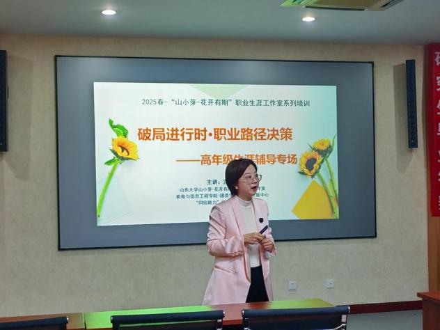 为全面贯彻落实立德树人根本任务,深化大学生生涯发展教育,切实解决各年级学生在成长发展中面临的阶段性需求,机电与信息工程学院针对不同年级特点,围绕服务技能提升、求职趋势研判、专业兴趣匹配等核心议题,在5月份精心打造了四场系列培训活动。该系列培训由“花开有期”生涯咨询工作室负责人宫建红老师主讲,面向学院全体同学开展,“北斗星”学业与职业发展服务队、各班级生涯委员及各年级对生涯发展感兴趣的同学分批次参加。