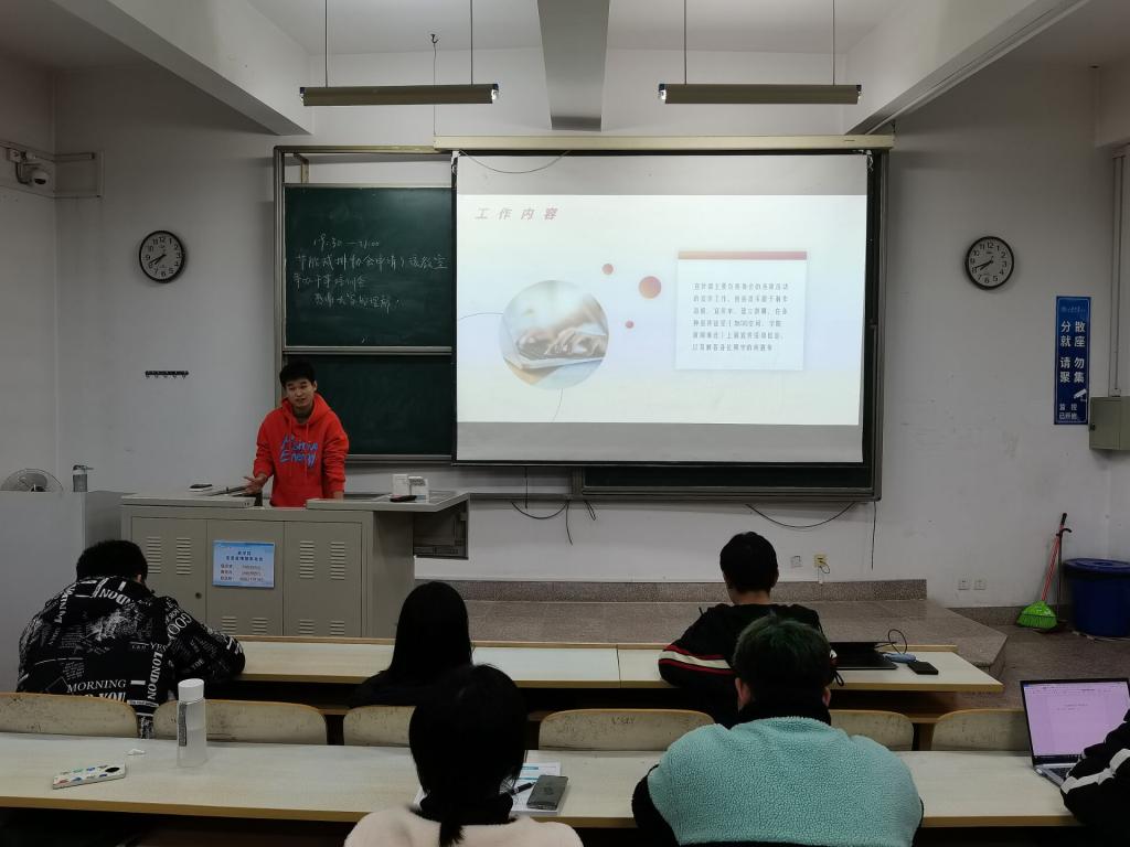 会议伊始,何力介绍了协会的部门构成、相关分工以及协会承办的主要品牌活动,并详细说明了开展本次节能减排竞赛的相关事宜。随后,秘书处负责人卫佳其对干事们进行“岗前培训”,指导通知撰写与活动报销等相关知识,向新干事们传授工作技能。宣传部部长李瑜则介绍了通讯撰写、活动宣传等部门工作。破冰环节中,留任的社团骨干向新干事们分享自身学生工作经验,并答疑解惑。各位干事则通过自我介绍了解彼此,增进友谊。